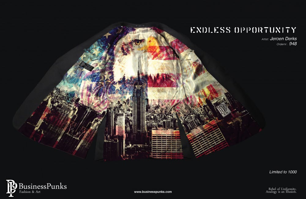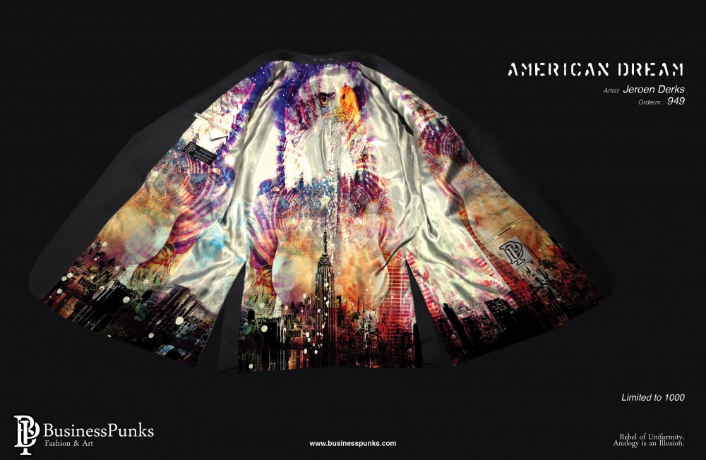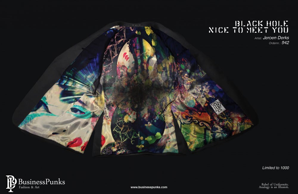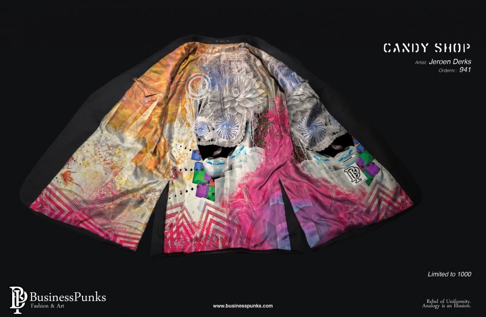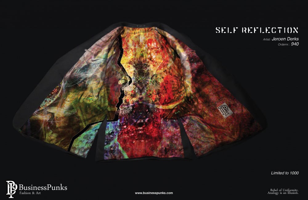 In samenwerking met Business Punks verwerk ik mijn kunst in maatpakken.